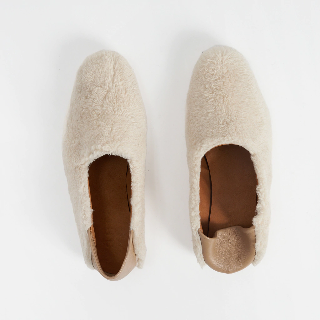 Chatas de piel sintetica con talon de cuero y forradas en cuero. Se pueden usar con el talon doblado tipo suecos o como chatas.